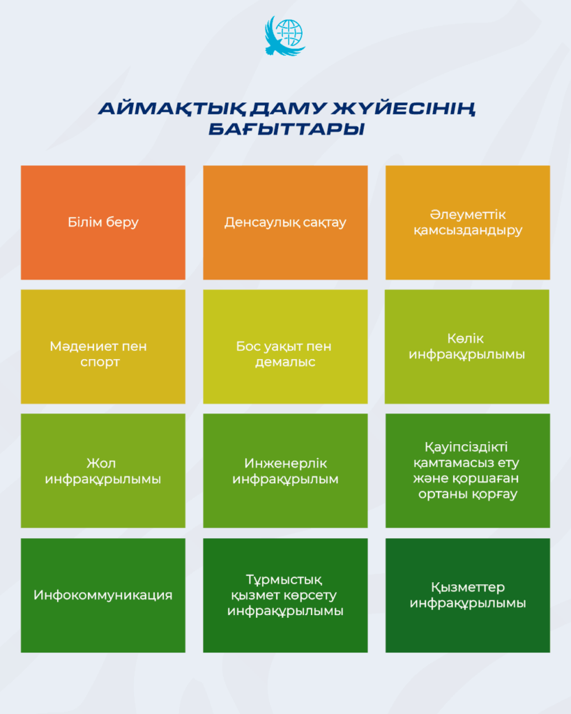 - әлеуметтік және инженерлік инфрақұрылымды дамыту;