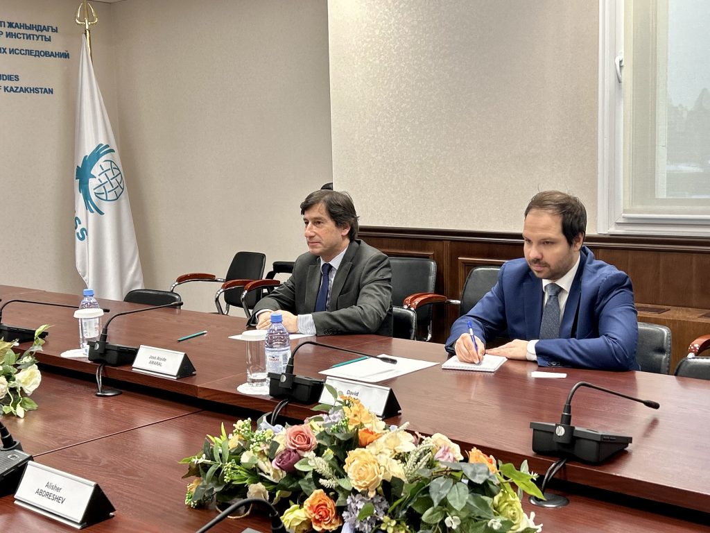 27 января в Казахстанском институте стратегических исследований при Президенте Республики Казахстан состоялась встреча директора КИСИ Жандоса Шаймарданова с Чрезвычайным и Полномочным Послом Португалии в Казахстане Жозе Амаралом.