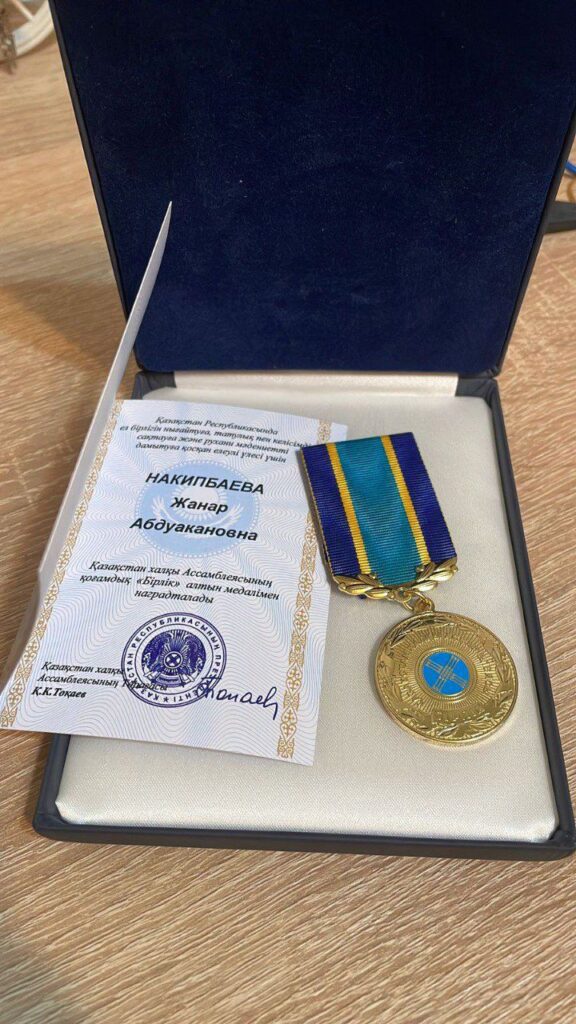Высокая награда вручена за ее значительный вклад в укрепление единства народа Казахстана, поддержание мира и общественного согласия, а также за весомый вклад в развитие духовной культуры страны.