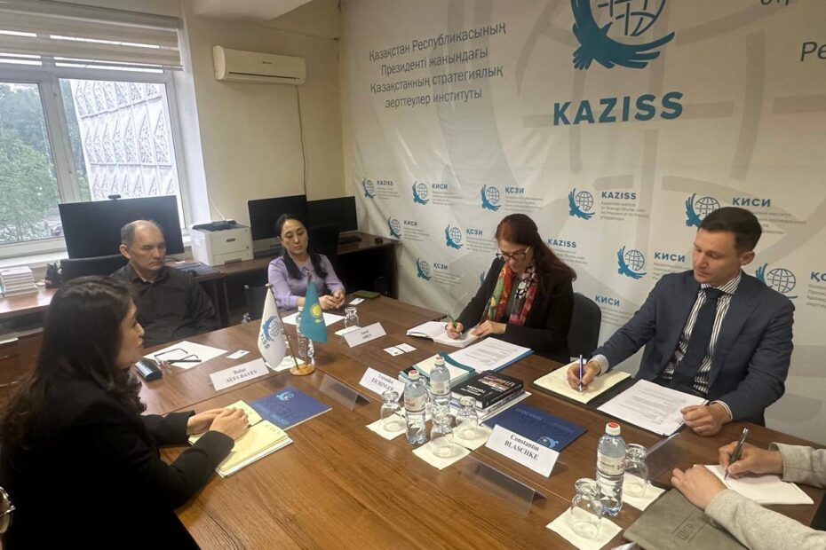 16 апреля 2026 года в Представительстве Казахстанского института стратегических исследований (КИСИ) при Президенте Республики Казахстан в г. Алматы состоялась встреча с делегацией Фонда Ханнса Зайделя (Германия) в составе руководителя отдела Северо-Восточной и Центральной Азии Фонда Вероникой Айхингер и руководителя проекта Фонда в Центральной Азии Константина К. Блашке.